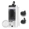 Eco friendly hot glass 600ml with metal reusable straw. Enjoy your favorite drink at any moment in this unique ecological thermos. It maintains the temperature for several hours and is made of stainless steel. Suitable for hot and cold drinks. Comes with a cleaning brush for the straw.