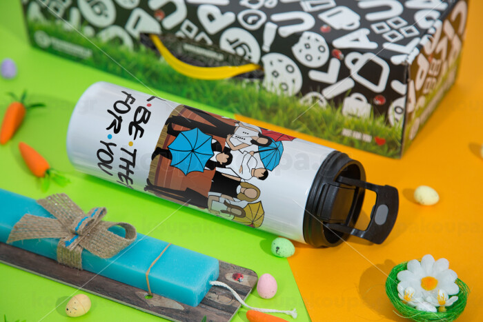 Friends cover, Easter candle,Travel Tumbler 2 Lids, with metal straw & cleaning brush & aromatic flat candle (30cm) (BLUE)