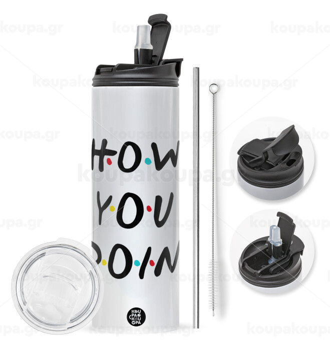 Friends How You Doin'?, Easter candle,Travel Tumbler 2 Lids, with metal straw & cleaning brush & aromatic flat candle (30cm) (BLUE)