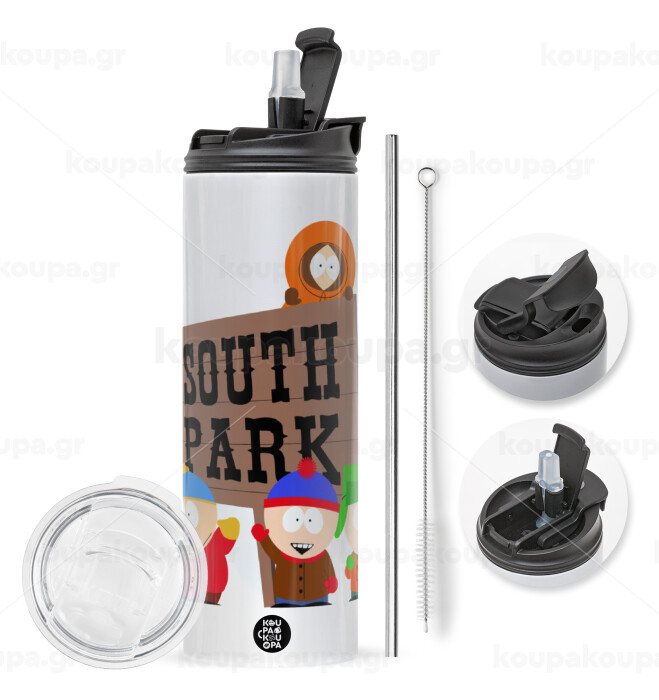 South Park, Easter candle,Travel Tumbler 2 Lids, with metal straw & cleaning brush & aromatic flat candle (30cm) (BLUE)