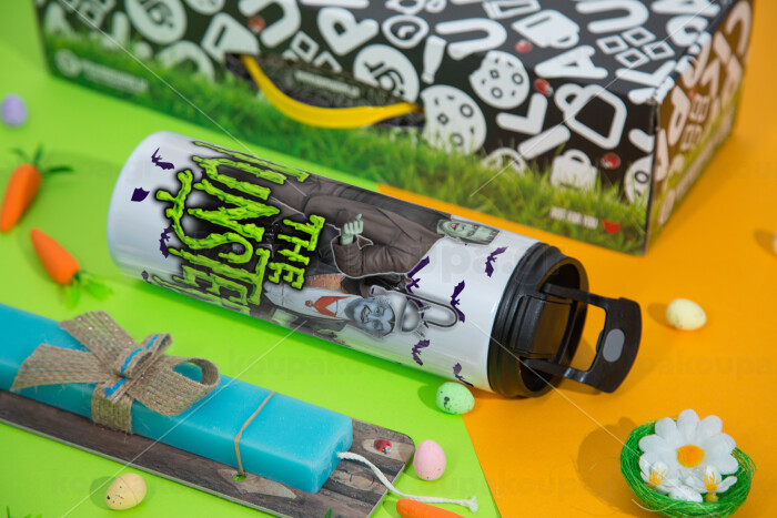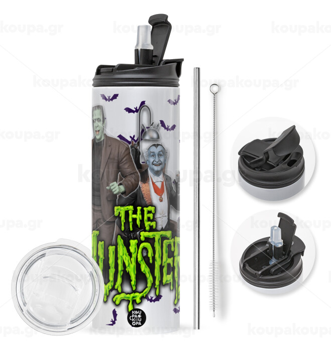 The munsters, Easter candle,Travel Tumbler 2 Lids, with metal straw & cleaning brush & aromatic flat candle (30cm) (BLUE)