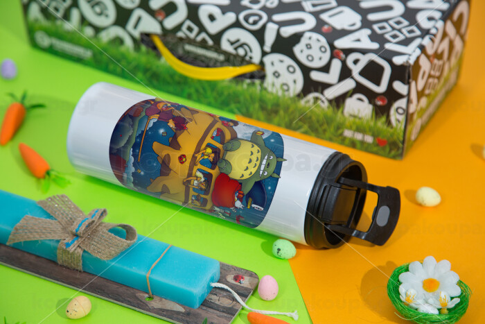 Totoro Catbus, Easter candle,Travel Tumbler 2 Lids, with metal straw & cleaning brush & aromatic flat candle (30cm) (BLUE)