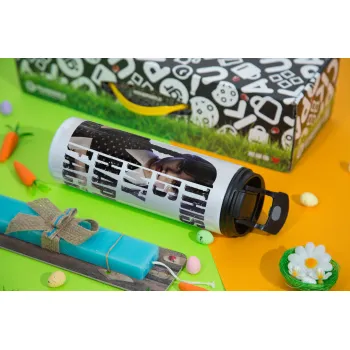 Wednesday, This is my happy face, Easter candle,Travel Tumbler 2 Lids, with metal straw & cleaning brush & aromatic flat candle (30cm) (BLUE)