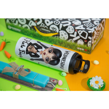 Wednesday Adams, i hate people, Easter candle,Travel Tumbler 2 Lids, with metal straw & cleaning brush & aromatic flat candle (30cm) (BLUE)
