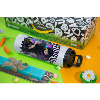 Wednesday Jenna Ortega, Easter candle,Travel Tumbler 2 Lids, with metal straw & cleaning brush & aromatic flat candle (30cm) (BLUE)