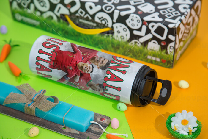 Cristiano Ronaldo, Easter candle,Travel Tumbler 2 Lids, with metal straw & cleaning brush & aromatic flat candle (30cm) (BLUE)