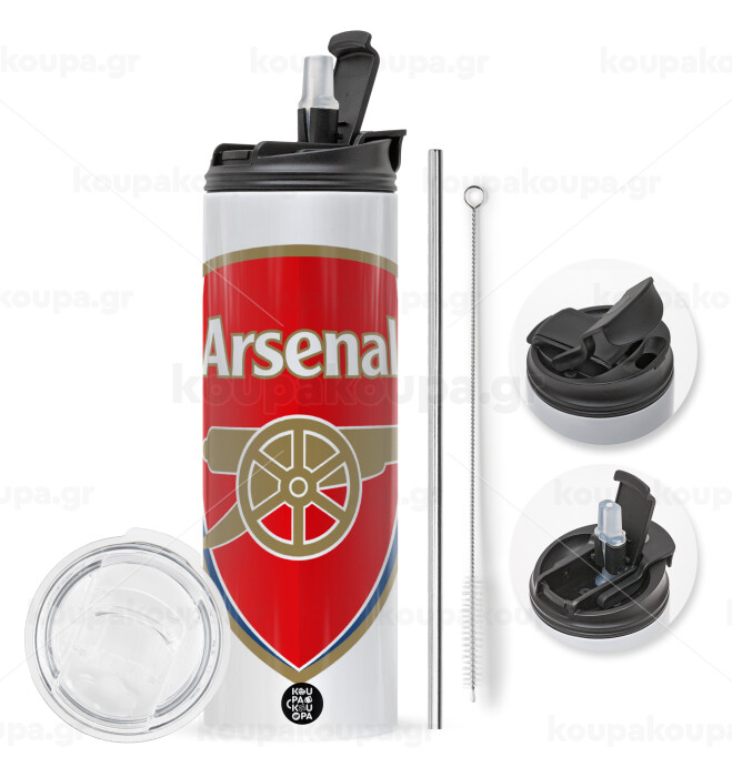 Arsenal, Easter candle,Travel Tumbler 2 Lids, with metal straw & cleaning brush & aromatic flat candle (30cm) (BLUE)