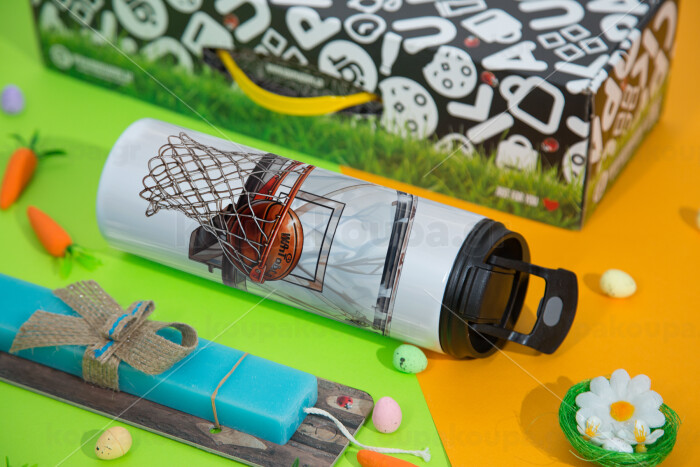 Basketball, Easter candle,Travel Tumbler 2 Lids, with metal straw & cleaning brush & aromatic flat candle (30cm) (BLUE)