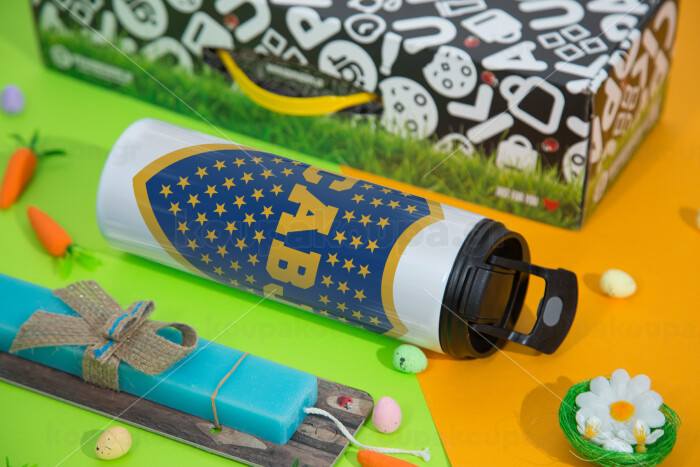 Club Atlético Boca Juniors, Easter candle,Travel Tumbler 2 Lids, with metal straw & cleaning brush & aromatic flat candle (30cm) (BLUE)