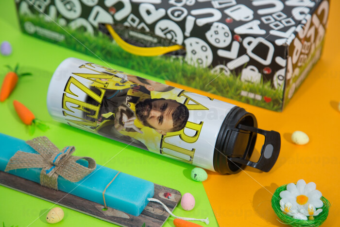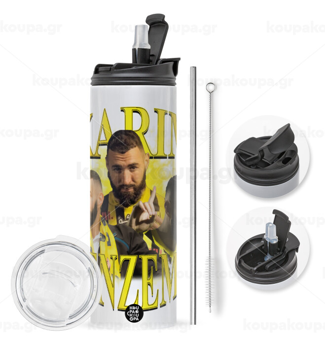 Karim Benzema, Easter candle,Travel Tumbler 2 Lids, with metal straw & cleaning brush & aromatic flat candle (30cm) (BLUE)