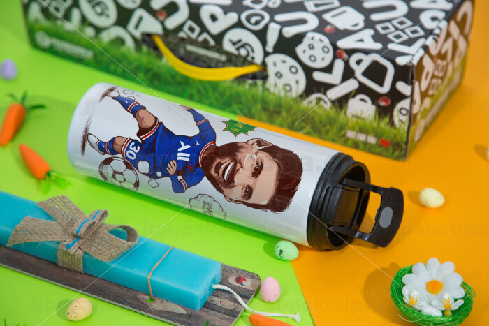 Lionel Messi drawing, Easter candle,Travel Tumbler 2 Lids, with metal straw & cleaning brush & aromatic flat candle (30cm) (BLUE)