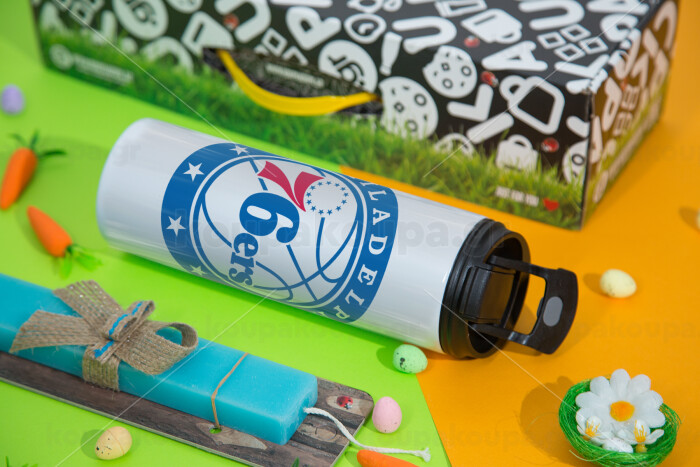 Philadelphia 76ers, Easter candle,Travel Tumbler 2 Lids, with metal straw & cleaning brush & aromatic flat candle (30cm) (BLUE)