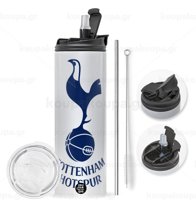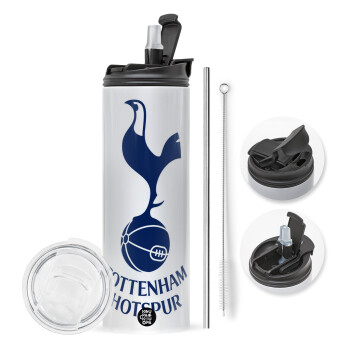 Tottenham Hotspur, Easter candle,Travel Tumbler 2 Lids, with metal straw & cleaning brush & aromatic flat candle (30cm) (BLUE)