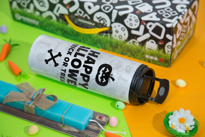 Happy Halloween pumpkin, Easter candle,Travel Tumbler 2 Lids, with metal straw & cleaning brush & aromatic flat candle (30cm) (BLUE)
