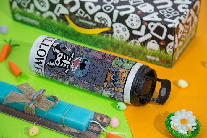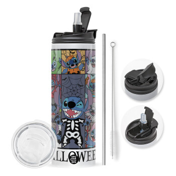 Stitch Halloween, Easter candle,Travel Tumbler 2 Lids, with metal straw & cleaning brush & aromatic flat candle (30cm) (BLUE)