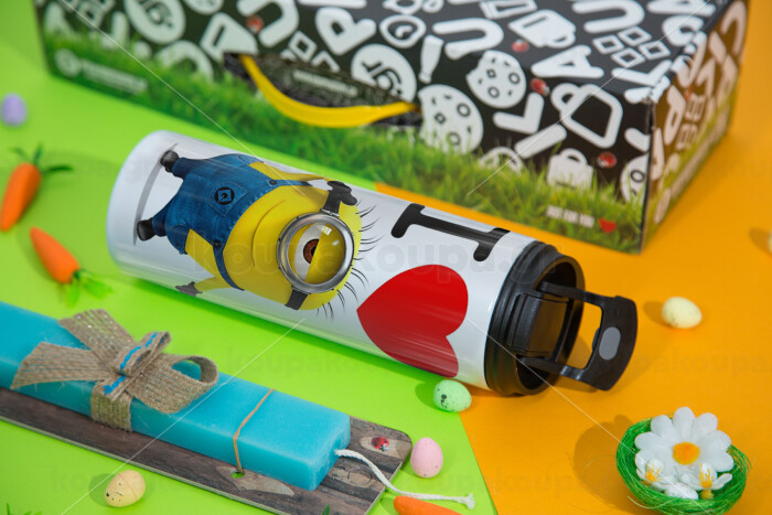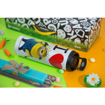 I love by minion, Easter candle,Travel Tumbler 2 Lids, with metal straw & cleaning brush & aromatic flat candle (30cm) (BLUE)