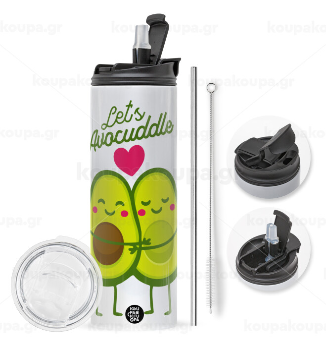Let's avocuddle, Easter candle,Travel Tumbler 2 Lids, with metal straw & cleaning brush & aromatic flat candle (30cm) (BLUE)