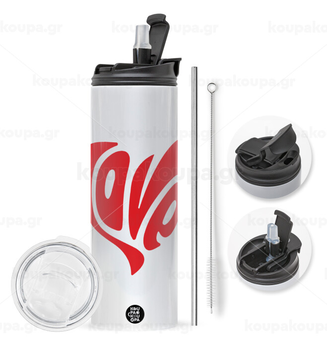 Love, Easter candle,Travel Tumbler 2 Lids, with metal straw & cleaning brush & aromatic flat candle (30cm) (BLUE)