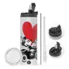 Mickey & Minnie love car, Easter candle,Travel Tumbler 2 Lids, with metal straw & cleaning brush & aromatic flat candle (30cm) (BLUE)
