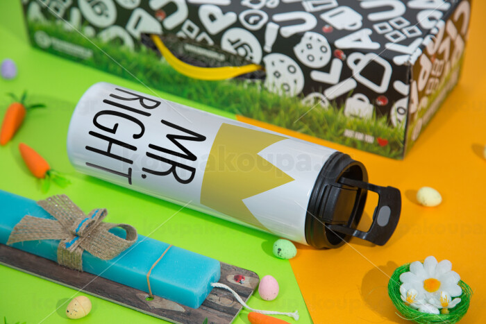 Mr right, Easter candle,Travel Tumbler 2 Lids, with metal straw & cleaning brush & aromatic flat candle (30cm) (BLUE)
