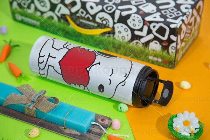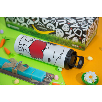 Snoopy takemy heart, Easter candle,Travel Tumbler 2 Lids, with metal straw & cleaning brush & aromatic flat candle (30cm) (BLUE)
