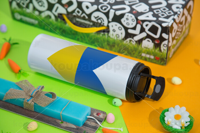 UKRAINE heart, Easter candle,Travel Tumbler 2 Lids, with metal straw & cleaning brush & aromatic flat candle (30cm) (BLUE)