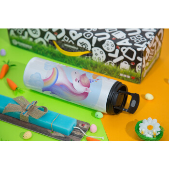 Cute unicorn, Easter candle,Travel Tumbler 2 Lids, with metal straw & cleaning brush & aromatic flat candle (30cm) (BLUE)