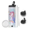 Cute unicorn, Easter candle,Travel Tumbler 2 Lids, with metal straw & cleaning brush & aromatic flat candle (30cm) (BLUE)
