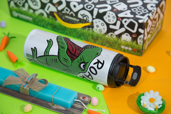 Dyno roar!!!, Easter candle,Travel Tumbler 2 Lids, with metal straw & cleaning brush & aromatic flat candle (30cm) (BLUE)