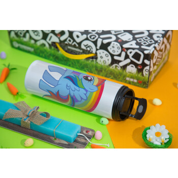 My Little Pony, Easter candle,Travel Tumbler 2 Lids, with metal straw & cleaning brush & aromatic flat candle (30cm) (BLUE)