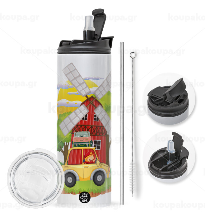 Toy car, Easter candle,Travel Tumbler 2 Lids, with metal straw & cleaning brush & aromatic flat candle (30cm) (BLUE)