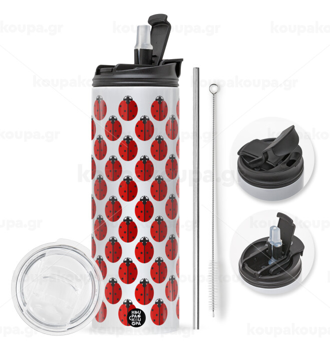 Coccinella, Easter candle,Travel Tumbler 2 Lids, with metal straw & cleaning brush & aromatic flat candle (30cm) (BLUE)