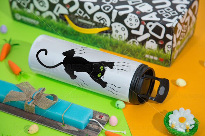 cat grabbing, Easter candle,Travel Tumbler 2 Lids, with metal straw & cleaning brush & aromatic flat candle (30cm) (BLUE)