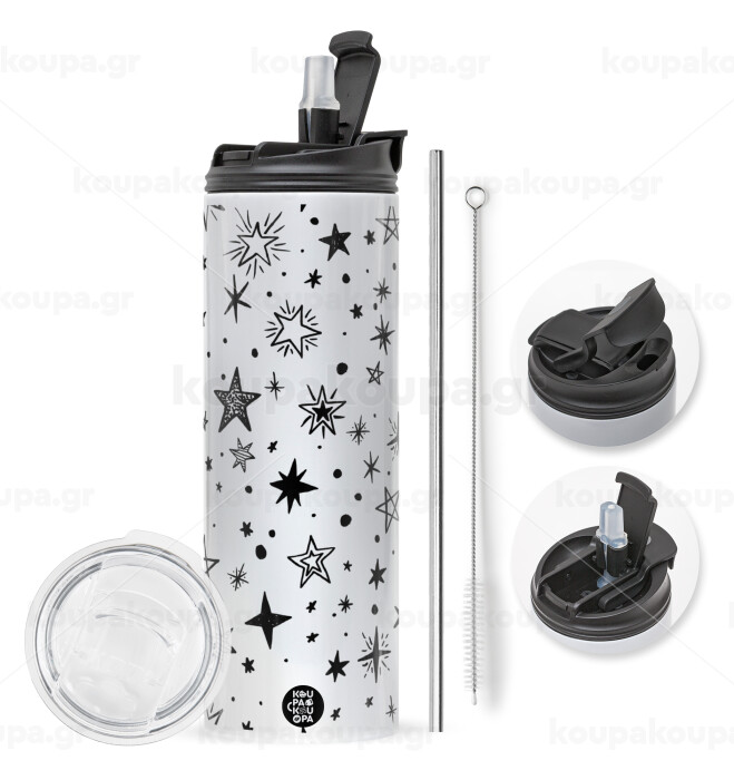 Doodle Stars, Easter candle,Travel Tumbler 2 Lids, with metal straw & cleaning brush & aromatic flat candle (30cm) (BLUE)