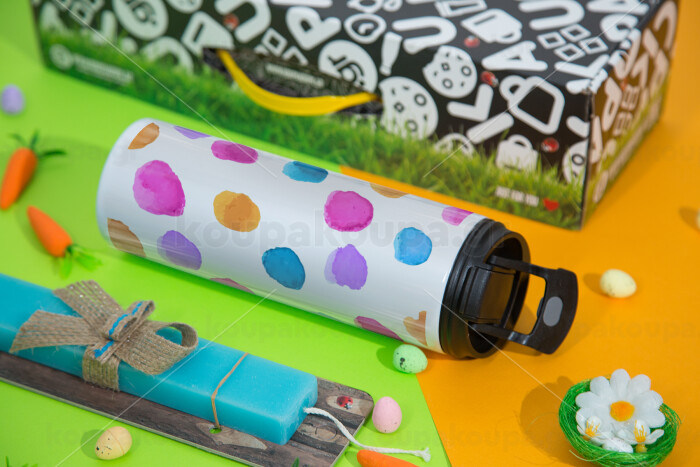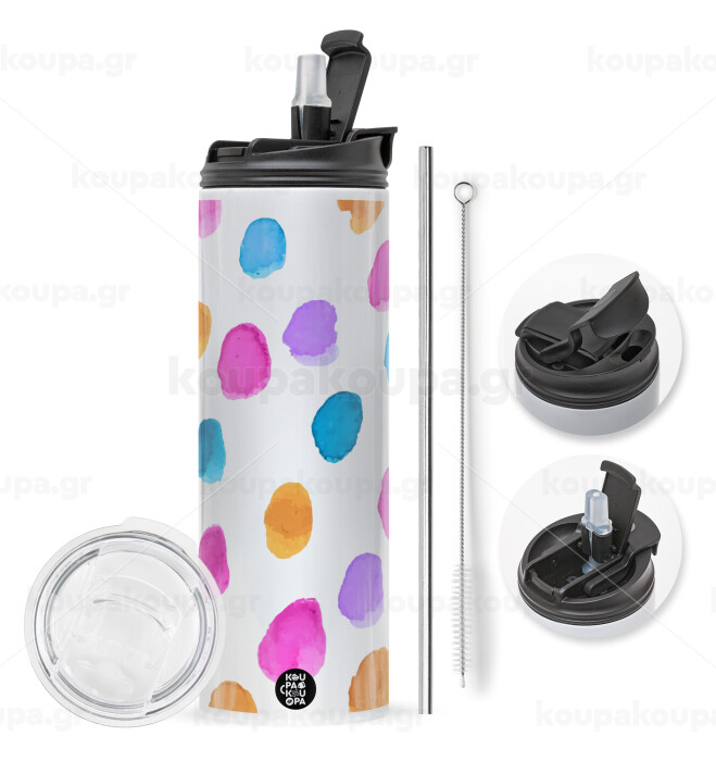 Watercolor dots, Easter candle,Travel Tumbler 2 Lids, with metal straw & cleaning brush & aromatic flat candle (30cm) (BLUE)