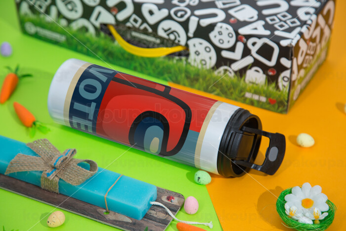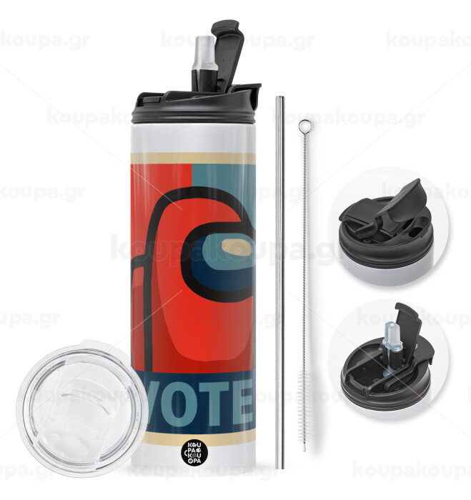 Among US VOTE, Easter candle,Travel Tumbler 2 Lids, with metal straw & cleaning brush & aromatic flat candle (30cm) (BLUE)