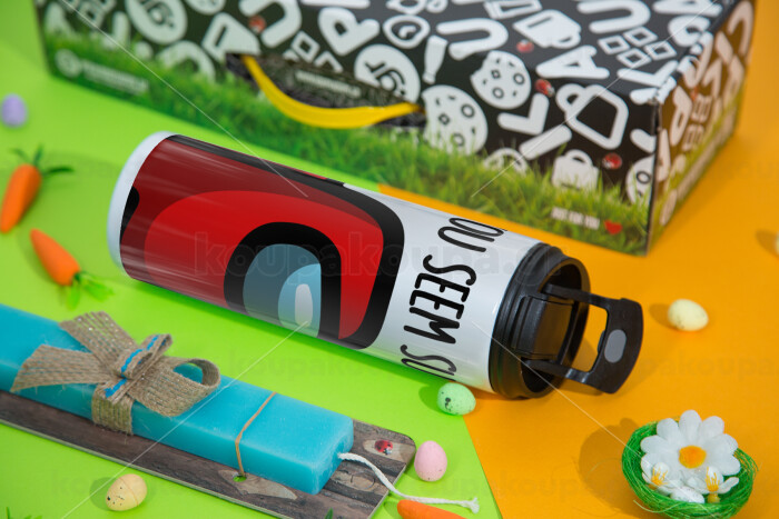 Among US, you seem sus, Easter candle,Travel Tumbler 2 Lids, with metal straw & cleaning brush & aromatic flat candle (30cm) (BLUE)
