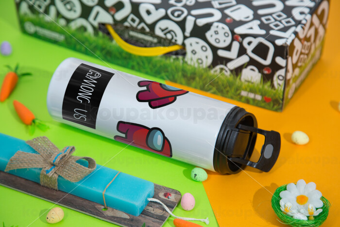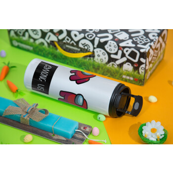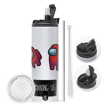 Among US, Easter candle,Travel Tumbler 2 Lids, with metal straw & cleaning brush & aromatic flat candle (30cm) (BLUE)