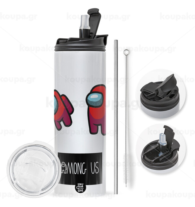Eco friendly hot glass 600ml with metal reusable straw. Enjoy your favorite drink at any moment in this unique ecological thermos. It maintains the temperature for several hours and is made of stainless steel. Suitable for hot and cold drinks. Comes with a cleaning brush for the straw.