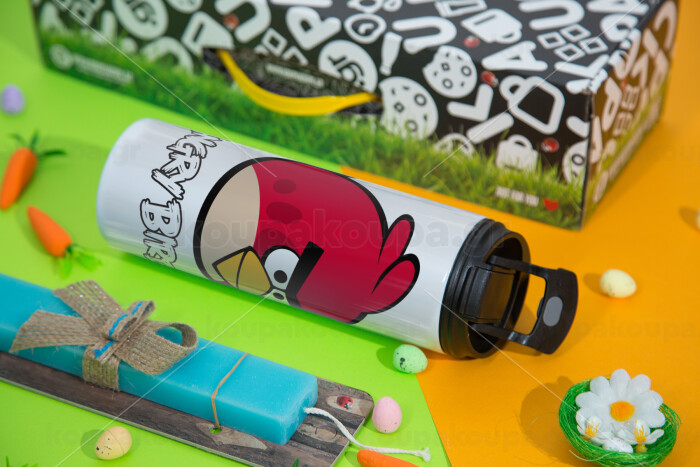 Angry birds Terence, Easter candle,Travel Tumbler 2 Lids, with metal straw & cleaning brush & aromatic flat candle (30cm) (BLUE)