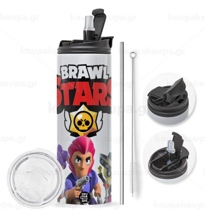 Brawl Stars Blue, Easter candle,Travel Tumbler 2 Lids, with metal straw & cleaning brush & aromatic flat candle (30cm) (BLUE)