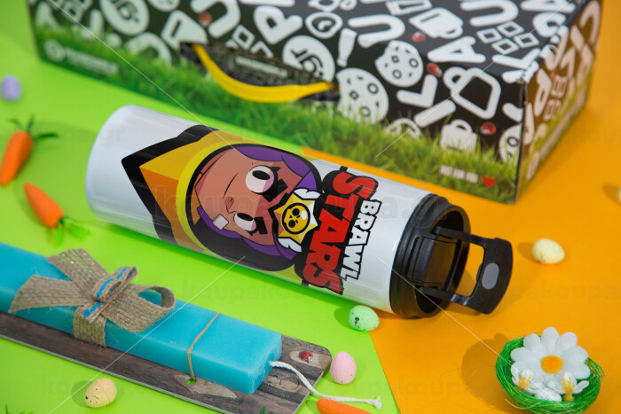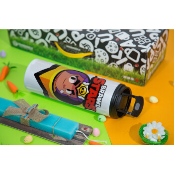 Brawl Stars Shelly, Easter candle,Travel Tumbler 2 Lids, with metal straw & cleaning brush & aromatic flat candle (30cm) (BLUE)