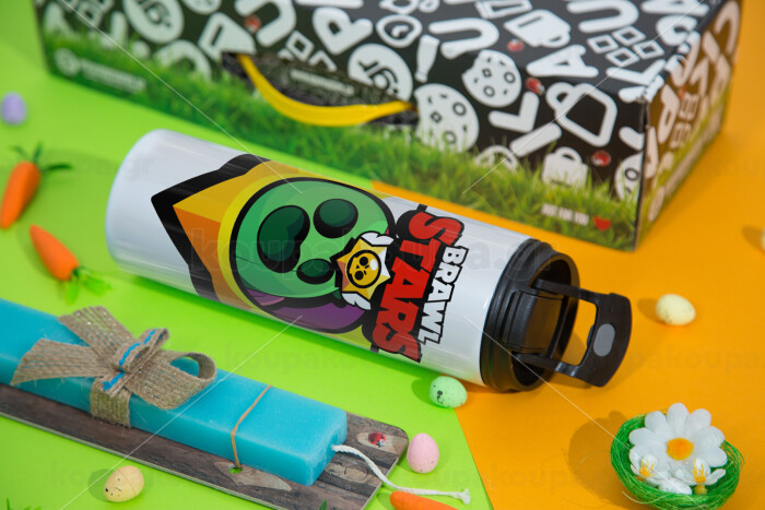 Brawl Stars Spike, Easter candle,Travel Tumbler 2 Lids, with metal straw & cleaning brush & aromatic flat candle (30cm) (BLUE)