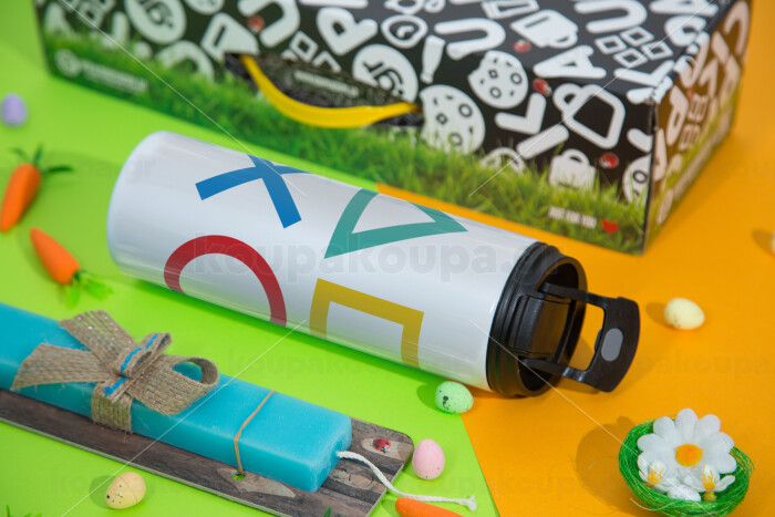 Gaming Symbols, Easter candle,Travel Tumbler 2 Lids, with metal straw & cleaning brush & aromatic flat candle (30cm) (BLUE)