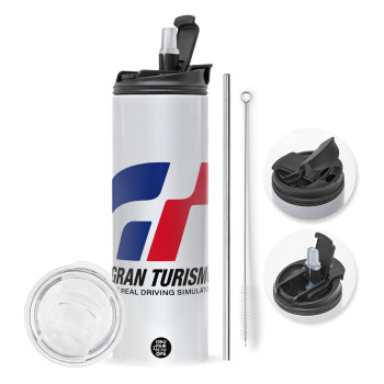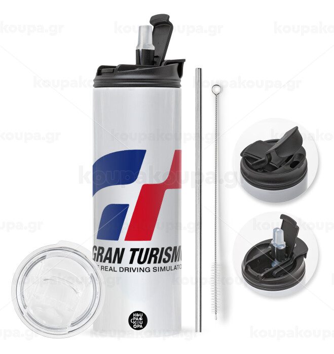 gran turismo, Easter candle,Travel Tumbler 2 Lids, with metal straw & cleaning brush & aromatic flat candle (30cm) (BLUE)