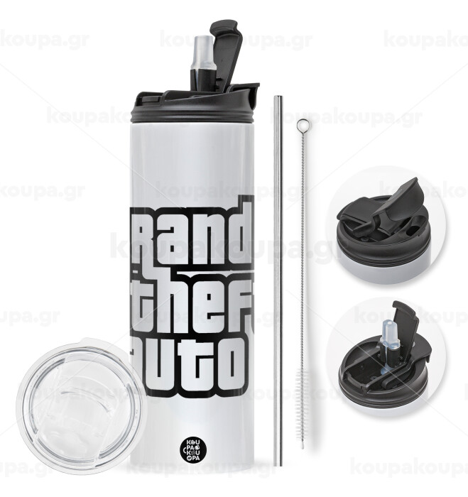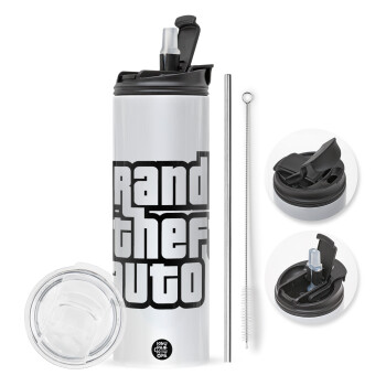 GTA (grand theft auto), Easter candle,Travel Tumbler 2 Lids, with metal straw & cleaning brush & aromatic flat candle (30cm) (BLUE)