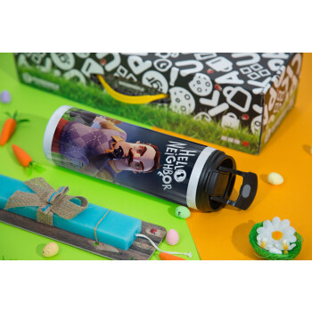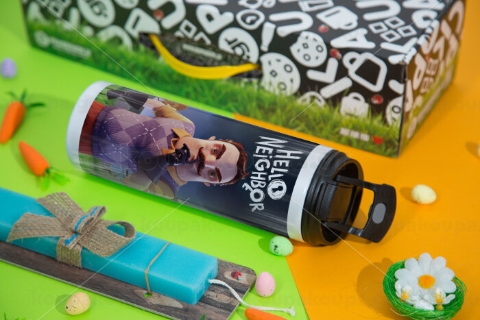 Hello Neighbor, Easter candle,Travel Tumbler 2 Lids, with metal straw & cleaning brush & aromatic flat candle (30cm) (BLUE)