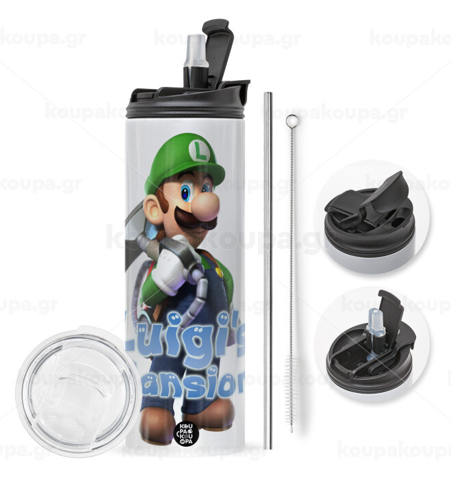 Luigi's Mansion, Easter candle,Travel Tumbler 2 Lids, with metal straw & cleaning brush & aromatic flat candle (30cm) (BLUE)