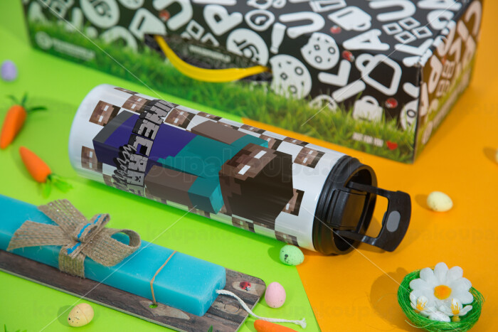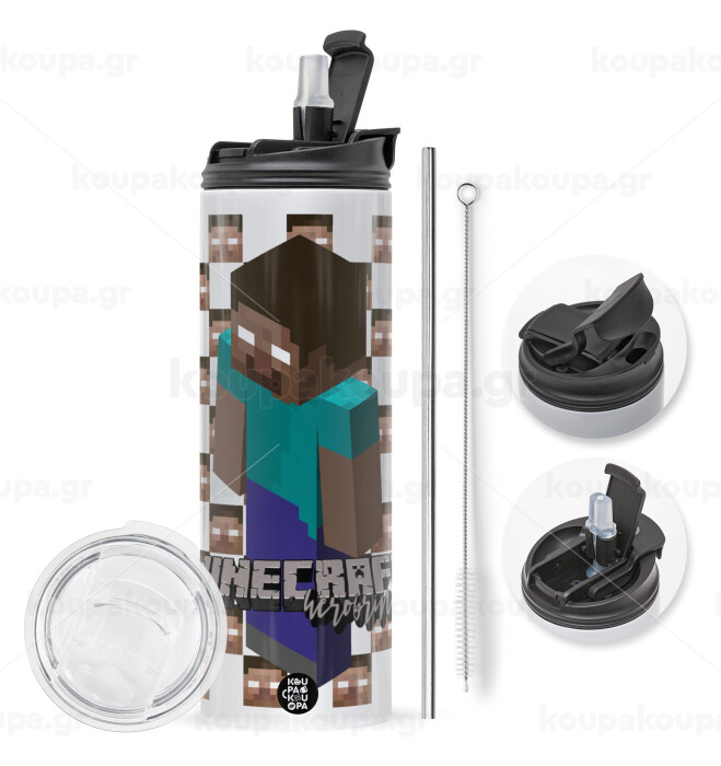 Minecraft herobrine, Easter candle,Travel Tumbler 2 Lids, with metal straw & cleaning brush & aromatic flat candle (30cm) (BLUE)