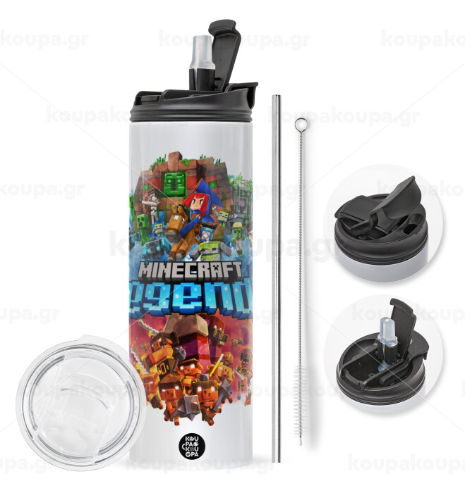 Minecraft legends, Easter candle,Travel Tumbler 2 Lids, with metal straw & cleaning brush & aromatic flat candle (30cm) (BLUE)
